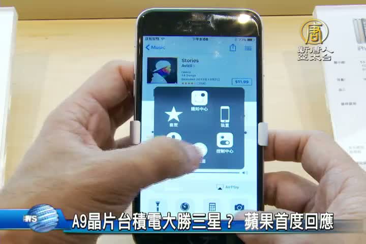 【新唐人亞太台 2015 年 10 月 09 日訊】蘋果iPhone6s搭載的A9處理器,有外國網友踢爆,使用台積電16奈米製程的晶片,省電和溫度效能都好過三星,更測試續航力多了整整兩個小時。這項事件,讓消費者很緊張,紛紛拿工具測試自己的iPhone,是用哪一家晶片製造的,而針對事件,蘋果也首度透過Techcrunch 網站回應,蘋果說兩家公司都進行嚴格的測試,真正的續航力就算有分別,也只差2到3%,指網友測試是誤導消費者,不過這個說法,似乎還沒辦法打消消費者疑慮。