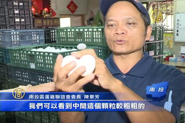 南投區蛋雞聯誼會會長 陳景芳:「基本上第一個就是先挑比較適中的,不要太大,適中的,顏色越白、越光亮的就越新鮮越好。(母雞)雞齡越大,牠生的蛋越大, 在挑外觀的時候, 我們可以看到中間這個顆粒較粗粗的,這個就比較不好。紅殼蛋和白殼蛋它的營養價值是一樣的。」