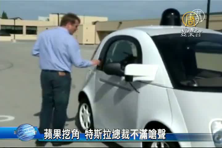 【新唐人亞太台 2015 年 10 月 12 日訊】電動汽車製造商特斯拉,首席執行官 馬斯克,日前在接受報紙採訪時,不改大砲性格,對於蘋果挖角特斯拉員工,馬斯克說,那些都是他們解雇的人。