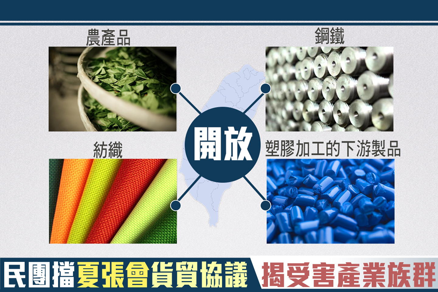 專家分析,中國要求台灣開放、降稅的產業,包括農產品、鋼鐵、紡織、塑膠加工的下游製品,這都是台灣就業人口眾多的內需產業,之後如果開放低價中國農工產品進口,他們都是被犧牲族群。然而,談判前沒有人與他們溝通,立法院也不能監督。