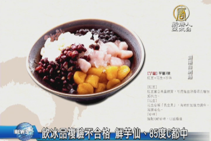 【新唐人亞太台 2015 年 10 月 13 日訊】衛福部食藥署網站發布公告資訊,在全台各縣市政府抽驗的1409件飲冰品,一共發現152件在生菌數、大腸桿菌,不符衛生標準,經過複驗,仍然有26件不合格,其中,包括「鮮芋仙」的粉條冰、芋圓3號甜品,「頂呱呱」的紅茶雪泥、「OK便利超商」的拿鐵咖啡,以及「85度C」的綠茶等,都在不合格名單。各縣市衛生局要求限期改善,或追查違規源頭業者,如果限期改正後仍檢出微生物超量,將依規定處新台幣3萬以上、300萬元以下罰緩。