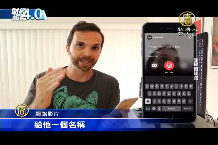網路影片:「你可以放上照片,你可以放上影片,或者你可以直播。你可以描述你的影片,給他一個名稱,然後當你點擊直播,就會在你的頁面開始直播。」
