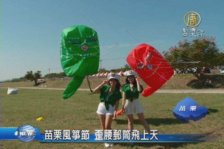 【新唐人亞太台 2015 年 10 月 15 日訊】九降風起,頗受好評的苗栗風箏節又來了,今年除了邀請到國內外近百位風箏好手同場競技外,還有台灣獨一無二的「歪腰郵筒軟體風箏」,五顏六色的風箏飛上天,相當吸睛。