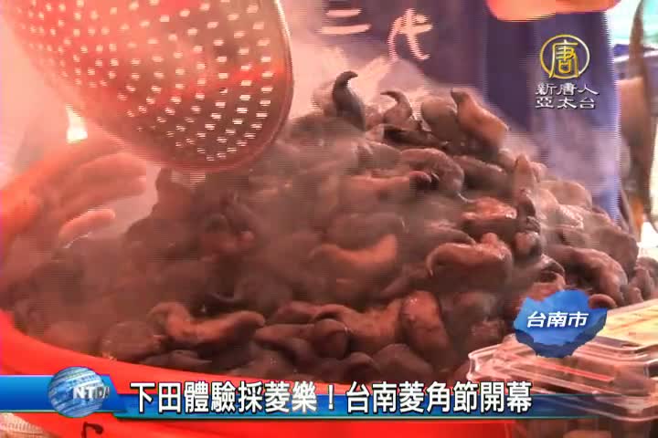 【新唐人亞太台 2015 年 10 月 17 日訊】台南官田是菱角的盛產地,不論種植面積或是產量都是位居全國之冠,每年的9月底到12月是菱角產期,官田處處可見採紅菱的景觀,今天(10/17)是菱角節產業文化活動開幕,許多民眾前來體驗採菱角樂趣,台南市長賴清德也特別到場,推銷這項在地名產。