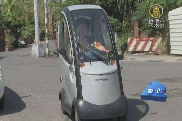 【新唐人亞太台 2015 年 10 月 18 日訊】在彰化鹿港道路上,最近出現一台酷炫的小電動車,可愛的造型相當吸睛。車主是一位80歲阿嬤,因為鹿港風大又冷,容易吹亂頭髮,家人買來給她代步,現在阿嬤常開著車趴趴走。