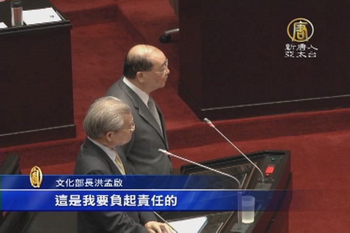 【新唐人亞太台 2015 年 10 月 20 日訊】文化部被爆出補助國民黨立委選舉,次長邱于芸被指洩密免職,邱于芸昨天大動作召開記者會回擊,要求公布會議錄音;對此,今天部長洪孟啟沒有多回應,只說邱于芸不免職,文化部會癱瘓。