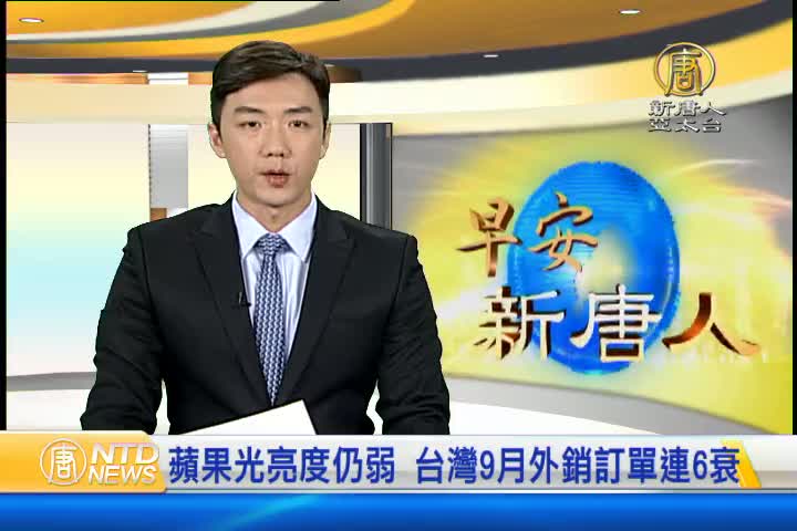 【新唐人亞太台 2015 年 10 月 21 日訊】財經消息,雖然蘋果iPhone6s新機出貨,帶動9月資通信產品訂單創下歷年同月新高。不過,台灣9月份的外銷訂單仍然是來到了連6衰,金額為 413.5億美元,年減4.5%。經濟部表示,主要原因是中國經濟成長放緩,影響半導體和面板,不過,年底歐美耶誕有拉貨需求,預期接下來,接單會有持續熱度。