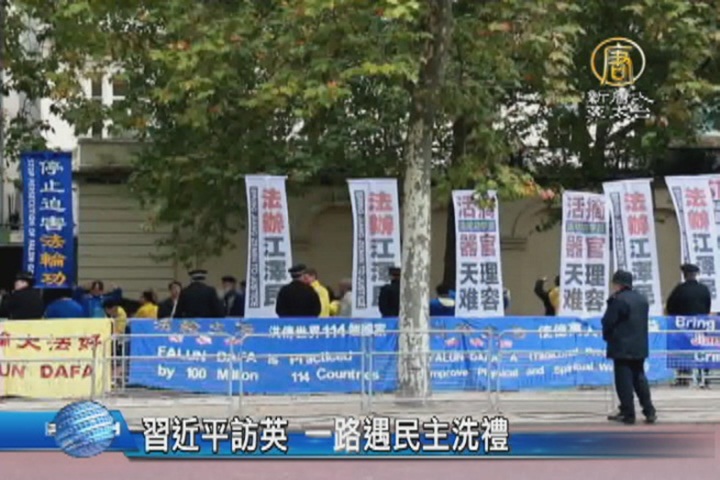 【新唐人亞太台 2015 年 10 月 21 日訊】中國國家主席習近平訪英,外媒普遍關注中國的人權問題,而習近平一路也遇到抗議陳情,接受民主洗禮。