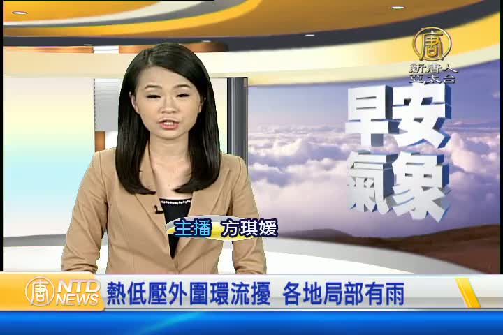 【新唐人亞太台 2015 年 10 月 22 日訊】歡迎您收看10月22日的早安新唐人,我是方琪媛。先來帶您關心今天的天氣情況。受到熱低壓外圍環流影響,今天在北部、東半部地區及恆春半島,都容易出現短暫陣雨,甚至是局部大雨。氣溫方面,日夜溫差大,介於22到30度,加上東北季風的影響,預計這波雨勢將下到星期天才會回穩。帶您一起來看到國際媒體重要訊息。