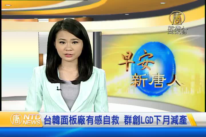 【新唐人亞太台 2015 年 10 月 23 日訊】今天工商時報頭條,台韓面板廠 開始要有感自救。群創、LGD 兩大廠,傳出11月起開始調節產能。由於下半年電視面板跌幅擴大,部分尺寸甚至跌破成本價位,而且11月起,包括中國 和韓系品牌廠 面板訂單明顯縮減,面板廠決定調節產能,平均減產幅度大約在5%到8%。