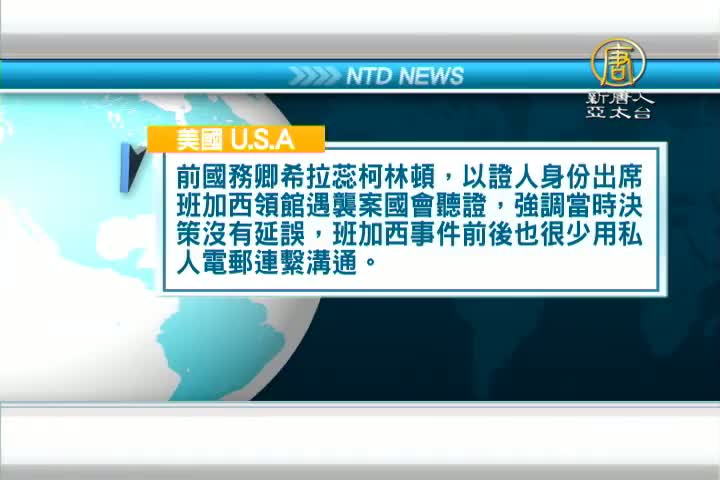 前國務卿希拉蕊柯林頓,以證人身份出席班加西領館遇襲案國會聽證,強調當時決策沒有延誤,班加西事件前後也很少用私人電郵連繫溝通。