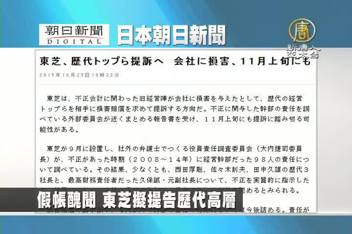 【新唐人亞太台 2015 年 10 月 26 日訊】來看到日本朝日新聞報導:假帳醜聞 東芝準備提告歷代高層。