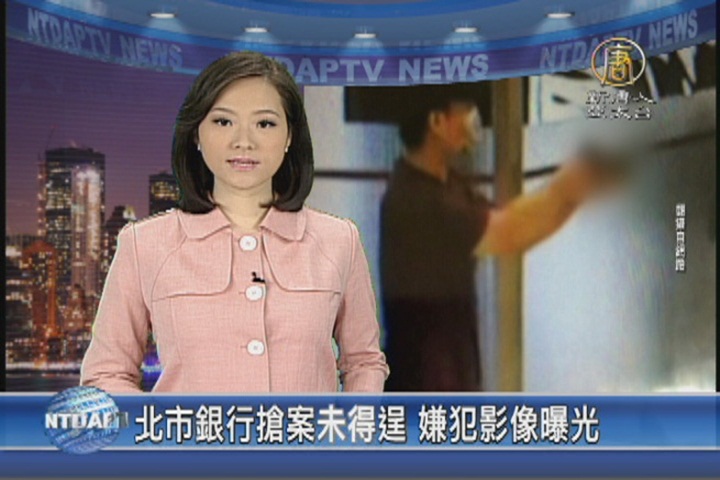 【新唐人亞太台 2015 年 10 月 26 日訊】今天下午2點多,台北市中正區發生銀行搶案,一名男子持假槍,闖進衡陽路上的兆豐銀行高喊要搶劫,拿槍托朝現場一名廖姓保全頭部毆打,但搶匪並沒未得手,搭計程車逃逸,警方公布了嫌犯影像,頭戴鴨舌帽,口罩。警方在現場採證後,也調閱路口監視器追查行蹤。