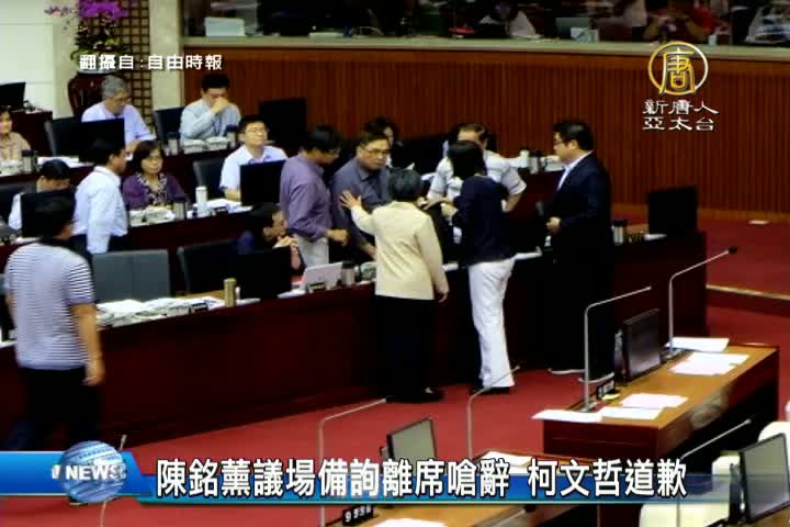 【新唐人亞太台 2015 年 10 月 26 日訊】台北市研考會主委陳銘薰在臉書貼文表示,無法接受首長宿舍使用費漲價,媒體報導後他又發文抱怨被霸凌,今天在議會,市議員顏聖冠質詢此事。沒想到,陳銘薰當場表示「士可殺不可辱」,願意立刻打包走人,就憤而離席。晚間,台北市長柯文哲發聲明道歉,表示同仁情緒控管不佳影響質詢,造成議事延宕,他督導不周深感抱歉,北市府明天會正式發函給議會致歉。對於陳銘薰的請辭,柯文哲請他休息一周後再討論。