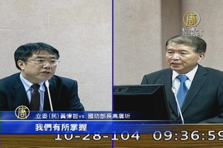 立委(民)黃偉哲vs.國防部長高廣圻:「如果那邊狀況有升高或改變,如果有改變狀況,我們有我們的因應方案。是聽電報知道還是看報紙知道?還是雷達自己看到的?我們有所掌握,我不是看報紙知道。」