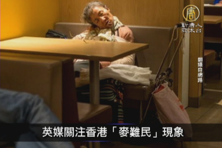 【新唐人亞太台 2015 年 10 月 29 日訊】香港麥當勞日前發現一名中年婦女趴在桌上已死亡多時,BBC中文網 深入報導「麥難民」現象,「麥難民」指一些無法負擔房屋租金而被迫寄居於一些24小時營業速食店如麥當勞內的人士。香港因人口老化、房產價格高和工資停滯不長等情況,「麥難民」的情況特別嚴重。