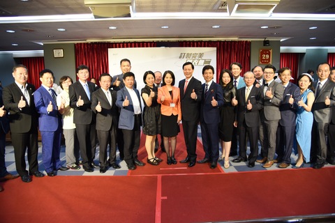 周副市長(中)與西服公會莊光榮理事長(右十)與會貴賓貴賓合照。(臺北市商業處提供)