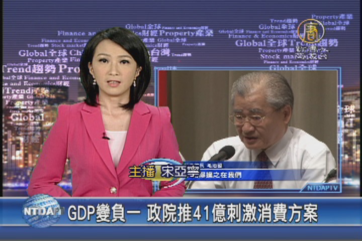 【新唐人亞太台 2015 年 10 月 30 日訊】新聞頭條首先看到。出口衰退加上投資不振,主計總處公布台灣第3季的GDP為 -1.01%,創下6年來新低。今天,行政院長毛治國親自召開記者會,宣布政府將投入台幣近41億元,推出刺激消費方案,希望能讓GDP,增加0.1%。