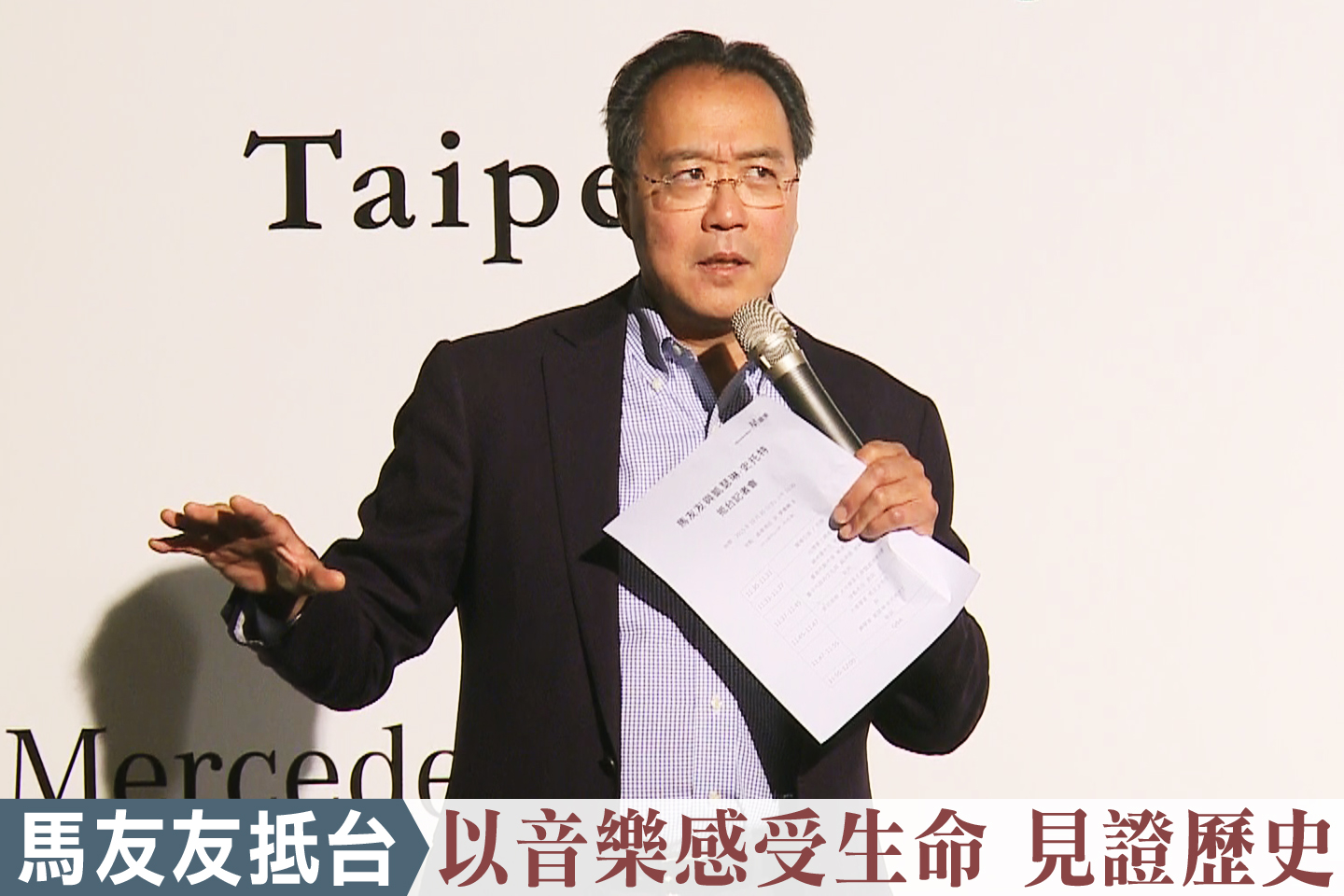 旅美大提琴家 馬友友:「社會大的問題,怎麼樣能夠幫助,用音樂能夠給人民一種的安慰。」這次巡演的主題是「生命之歌」,馬友友表示,其中「A大調奏鳴曲」和「愛的禮讚」,這兩首浪漫的歌曲,是獻給結褵37年的太太。