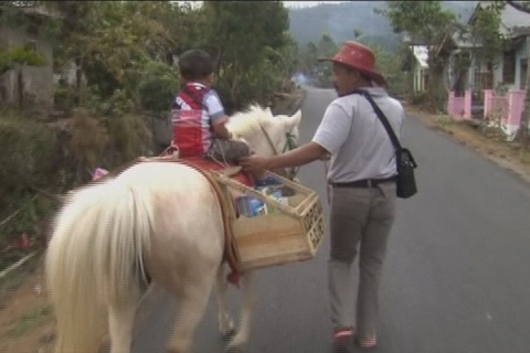2018-05-11 21:15:49在印尼中部爪哇省的一個偏遠村莊,有個名叫蘇魯里(Ridwan Sururi)的男子,他成立了一個「馬匹圖書館」,他用馬匹載書到偏僻的地區,供當地民眾免費閱讀,同時幫助兒童識字與學習知識。