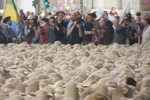 【新唐人亞太台 2015 年 11 月 01 日訊】10月25日星期日,約有兩千頭的綿羊穿過馬德里市區(Madrid),這是西班牙傳統動物的年度大遷徒,為了將羊群從寒冷的北部遷移至比較暖活的南部地區。