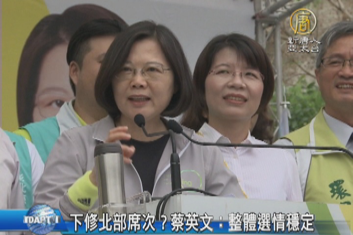 【新唐人亞太台 2015 年 11 月 01 日訊】民進黨總統參選人蔡英文,今天(11/1)輔選列車開到彰化、南投,持續進攻泛藍選區。面對有消息說,民進黨要下修北部立委席次,蔡英文說,民進黨現在整體選情穩定,這是不正確的消息。