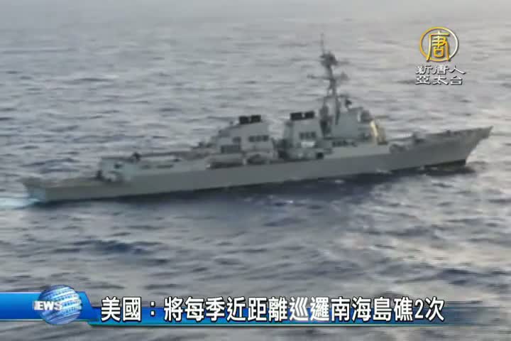【新唐人亞太台 2015 年 11 月 03 日訊】美國海軍計畫在每一季,會有2次前往南海人工島礁12 海里範圍內巡邏。美國白宮副國家安全顧問羅茲表示,美國將展現致力維護南海爭議水域的航行自由,定期行使在國際法之下的權利,不過,美中海軍高層上週進行視訊對話,中方態度強硬表示,如果美國不停止在南海採取「挑釁行動」,1個小事故就可能引發戰火。