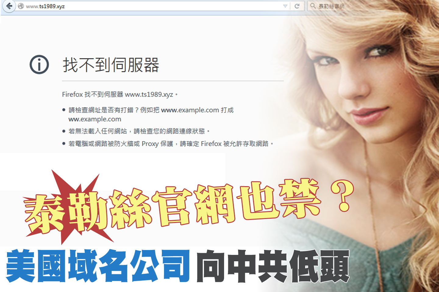 美域名公司向中共低頭 泰勒絲官網也禁?