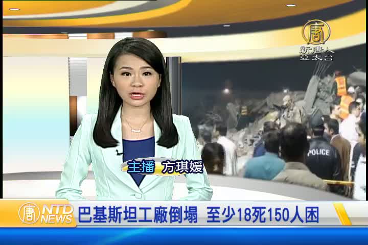 【新唐人亞太台 2015 年 11 月 05 日訊】巴基斯坦東部一間4層樓高的工廠昨天發生倒塌,造成至少18人死亡,數十人受傷,現場還有超過一百五十人被埋在瓦礫堆中等待救援。這是一個專門生產購物袋的工廠,最近正在進行施工。事發當時,工廠內大批工人走避不及,當局正積極搶救可能的生還者。