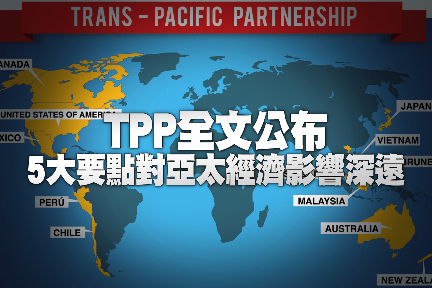 TPP全文公布 5大要點對亞太經濟影響深遠