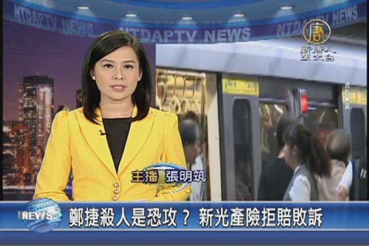 【新唐人亞太台 2015 年 11 月 09 日訊】歡迎回來。去年5月鄭捷犯下台北捷運4死22傷慘案,北捷依《大眾捷運法》向新光產險投保「責任險」,但新光卻以此案為合約中「911恐怖主義」除外條款拒賠,台北地院不認同,判新光敗訴。應依約理賠,全案可上訴。新光產險今天下午發出聲明,表示將不再上訴,加速理賠。