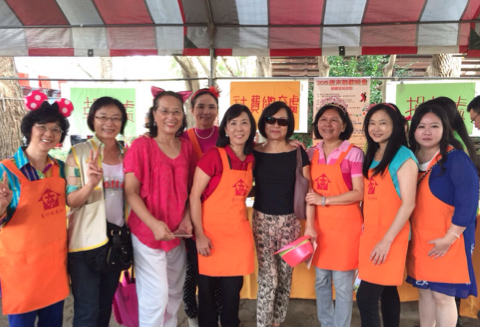 國際崇她新竹社長陳明珠(右2)帶領社員共同參與跳蚤巿場義賣