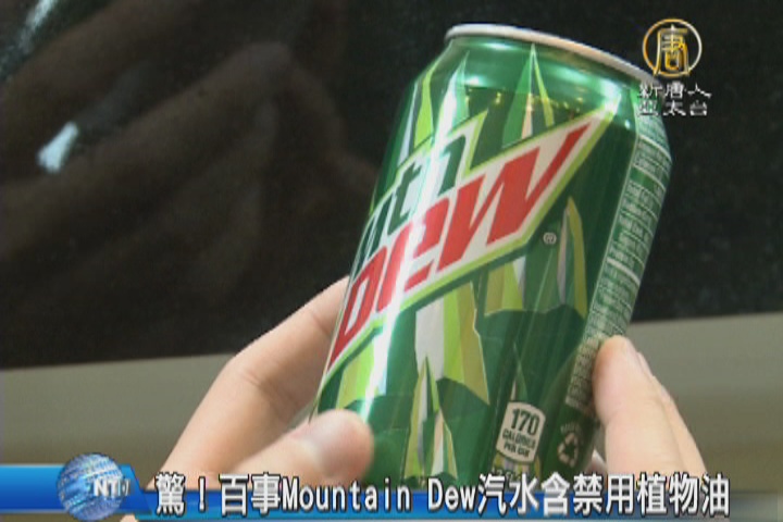【新唐人亞太台 2015 年 11 月 12 日訊】又再爆出食安問題。日前有民眾向食藥署檢舉,說賣場 進口美國百事公司「Mountain Dew 柑橘風味汽水,含台灣禁止使用的添加油「溴化植物油(BVO)」。經食藥署調查證實,已經要求廠商限期將產品下架。