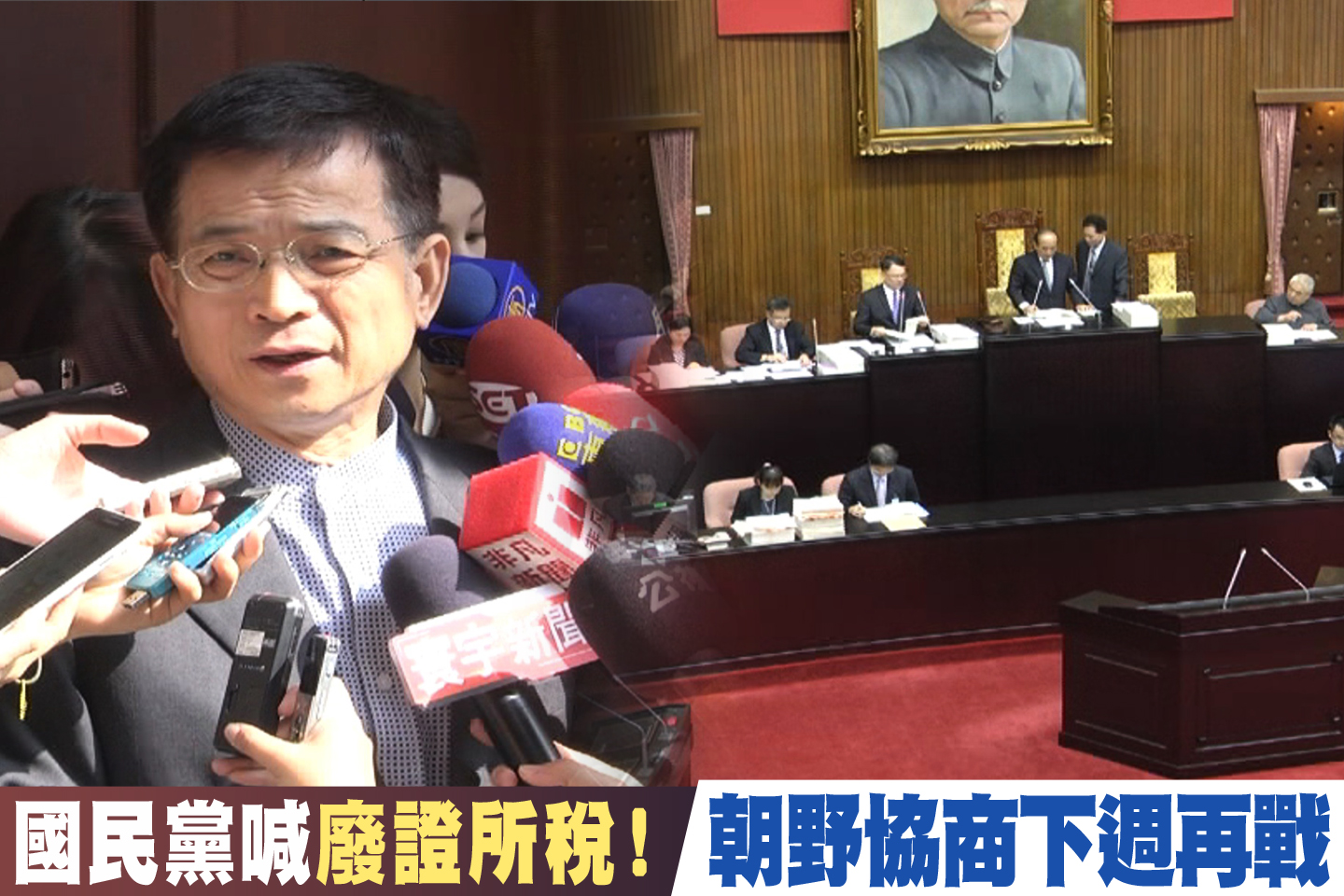 國民黨召開黨團大會,討論延宕已久的證所稅修法議題,藍營內部出現轉彎,轉為支持「朱立倫版」的逕廢證所稅。