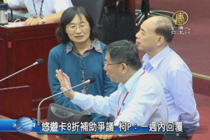 【新唐人亞太台 2015 年 11 月 13 日訊】用悠遊卡搭捷運打折,每年北市府要支出18億元的補助款,台北市議員陳炳甫今天指出,這筆費用應該由悠遊卡公司付費,台北市長柯文哲表示,這影響太大,會再內部討論後,1週內給出答覆。
