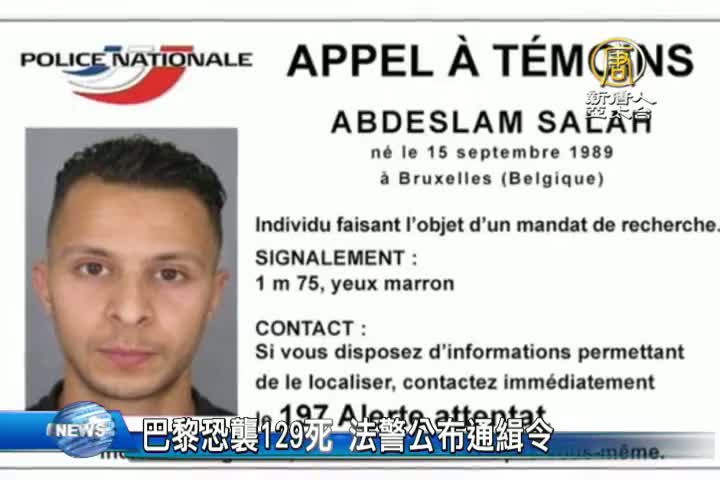 【新唐人亞太台 2015 年 11 月 16 日訊】法國恐攻案,造成129死、超過300人傷,目前,至少有14國公民遇害,最新消息,法國警方公布一張嫌犯照片,發佈通緝令。這名26歲男子沙雷,在布魯塞爾出生,警方警告大眾,此人是危險人物,比利時也同時發布國際通緝令。而14日,比利時警方還在首都貧民區 莫倫貝克,逮捕3名嫌犯,影片曝光後,遭到廣傳。法國總統歐蘭德決定,將把巴黎恐攻案後的緊急狀態,維持3個月之久。