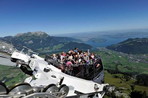 CabriO 屬雙層纜車,上層是露天開篷設計,讓大家可以零阻隔地俯瞰琉森湖及瑞士中部的景色。(myswitzerland官網圖).