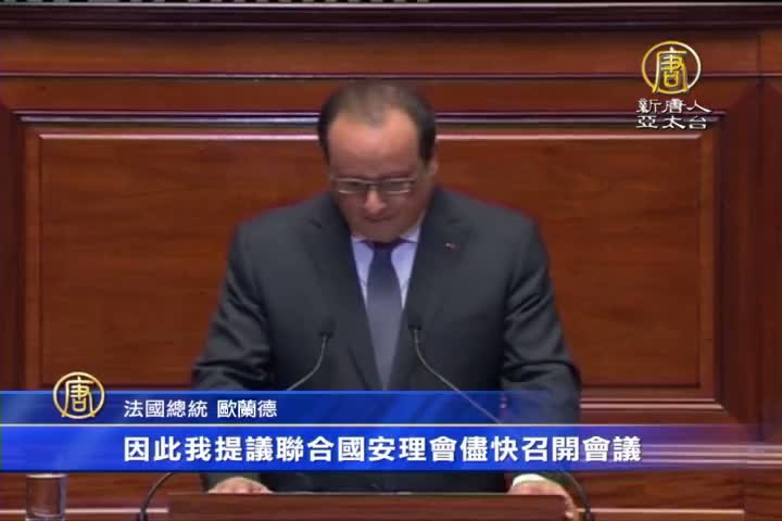 法國總統歐蘭德:「消滅伊斯蘭國是整個國際社會所需要面對的問題。因此我提議聯合國安理會儘快召開會議,通過決議來彰顯所有國家都對抗恐怖主義這一共同目標。」