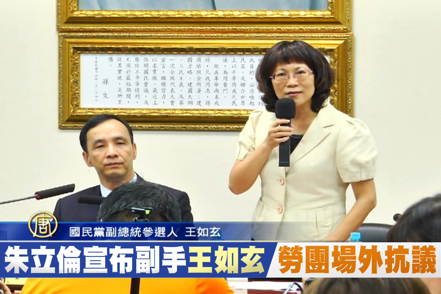 朱立倫宣布副手王如玄 勞團場外抗議