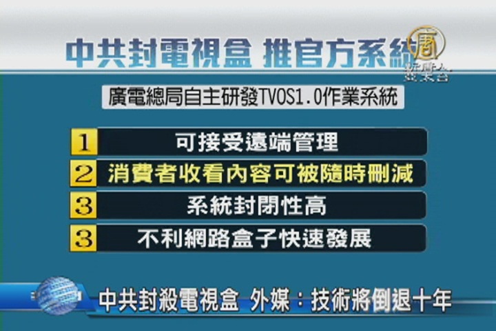 根據華爾街日報報導,中共對網路盒子的封殺,將使中國網路電視機的技術倒退十年,封殺行動也預計會影響中國製電視盒子的海外銷量。