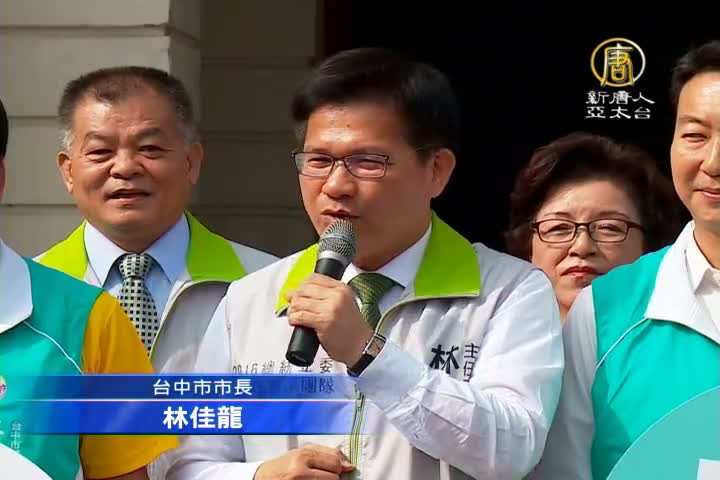 【新唐人亞太台 2015 年 11 月 24 日訊】2016立委選舉,民進黨在台中市提名六位候選人,今天(24日)上午,在市長林佳龍的帶領下,六位立法委員候選人兩兩騎乘協力車現身,聯合登記。