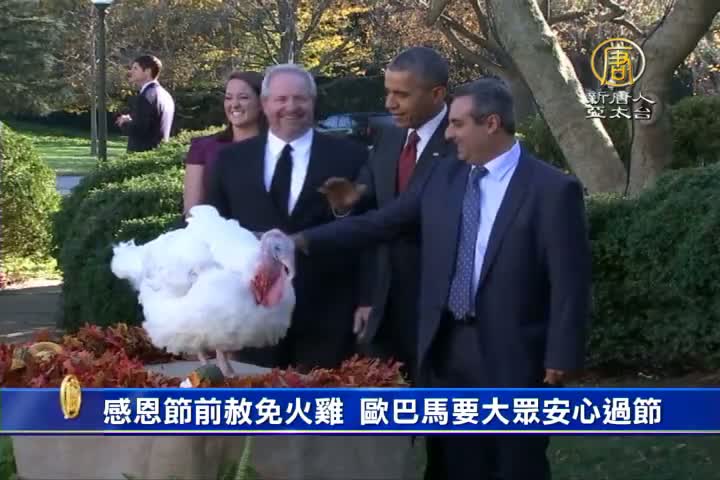 【新唐人亞太台 2015 年 11 月 26 日訊】每年的感恩節,美國總統都會依照慣例,在白宮舉行赦免火雞的儀式。今年,美國總統歐巴馬依然照例赦免了兩只火雞。