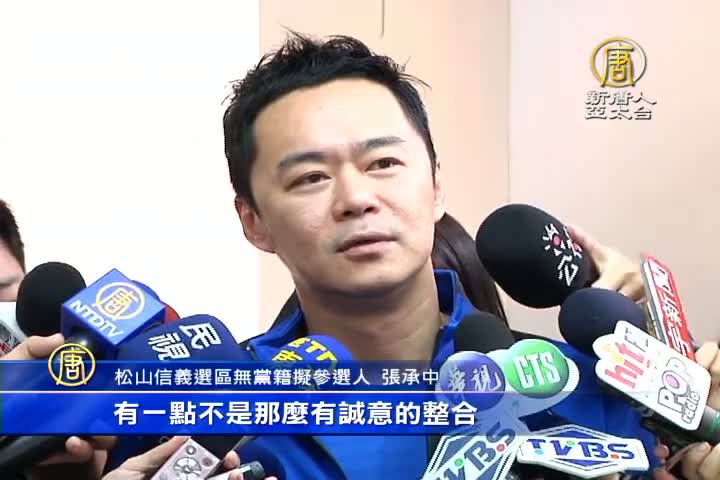【新唐人亞太台 2015 年 11 月 27 日訊】藝人Selina老公張承中,昨天(26日)在臉書宣布退出立委選戰,他今早親自出面說明原因,整合不成功是退選主因,批評同區參選人楊實秋,說法「變來變去」,沒有誠意整合,至於媒體詢問,未來有無可能幫楊實秋輔選?張承中直言,「不會」