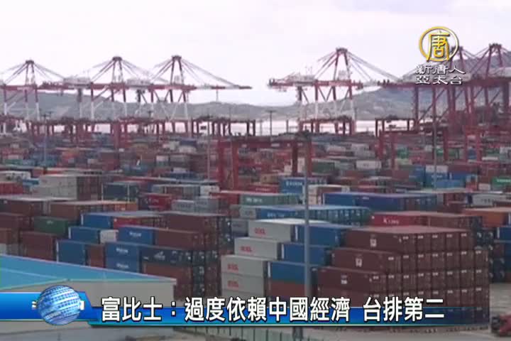【新唐人亞太台 2015 年 11 月 30 日訊】中國經濟成長趨緩,過度依賴中國的國家都跟著受拖累,美國《富比士》雜誌列出太依賴中國經濟的排名,台灣位於第二。內容寫到,中國佔台灣出口比重高達26%,台灣整體GDP也有16%是依賴中國。 第一名則是澳洲,因為澳洲大量出口鐵礦砂給中國,中國佔澳洲的整體出口比重高達34%。另外,第三名則是南韓, 中國佔南韓出口約達25%,佔GDP約11%。目前在澳洲與南韓國內,都陸續傳出檢討過度依賴中國經濟的聲音。