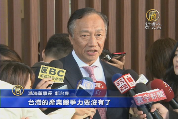 【新唐人亞太台 2015 年 12 月 01 日訊】鴻海董事長郭台銘,今天與中國海協會長陳德銘見面,會後向媒體喊話,抨擊政府現在,在放選舉假,但面板業的危機已經到來,要求成立「經濟對策行動小組」,明年下半年才有機會。