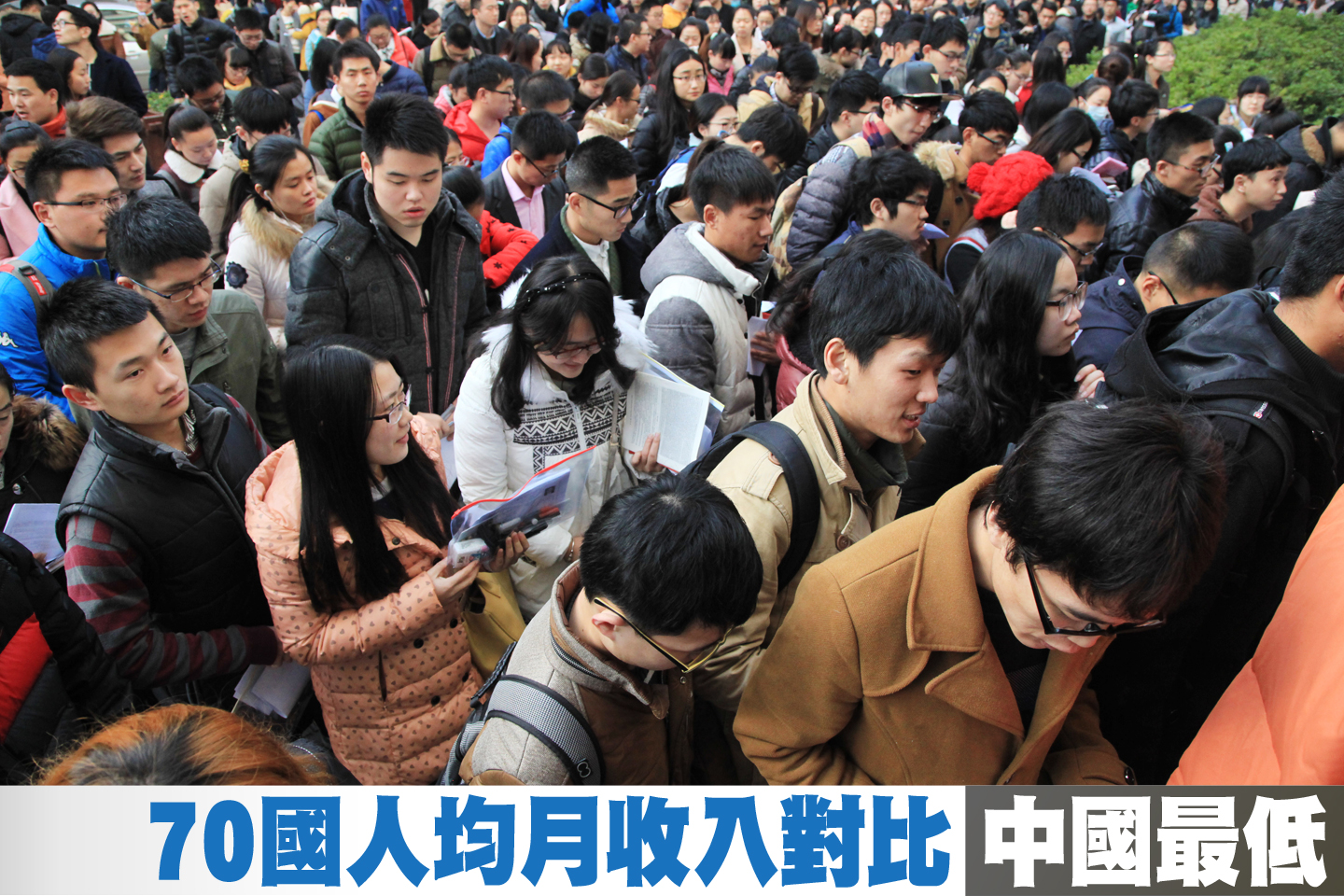 【新唐人亞太台 2015 年 12 月 01 日訊】網路上近期流傳的一份世界70個國家人均月收入對比的文章,文中顯示,70個國家中, 中國倒數第一。與世界上多數排名靠前的國家相比,中國人的月均收入僅是他們的零頭。