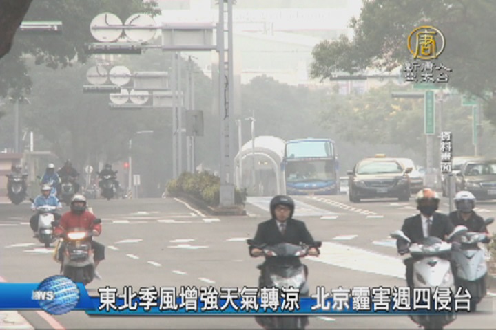 【新唐人亞太台 2015 年 12 月 02 日訊】受到東北季風影響,今晚變天,台灣北部及東北部地區天氣轉涼,並可能有短暫雨。東北季風也會挾帶北京霾害來台,入秋後首波境外空氣污染,將在明天週四(3日)報到,北台灣首當其衝,而雲嘉南及高屏地區的揚塵情況嚴重,提醒民眾,午後要特別留意。