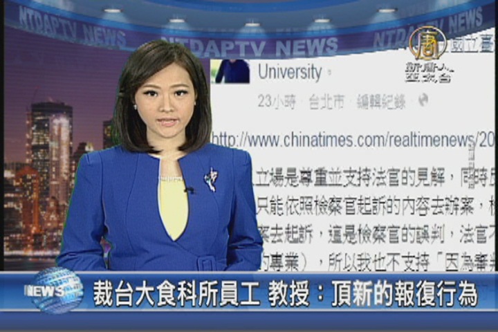 【新唐人亞太台 2015 年 12 月 03 日訊】頂新劣油案一審宣判無罪,引發社會譁然,台大校長楊泮池開第一槍,宣布台大將「無限期抵制」頂新產品。另外,台大食科所教授徐丞志在臉書透露,台大食科所去年底就表態不支持頂新,結果,頂新就針對性地把台大食科所產學合作的實習生,和畢業的新進員工通通裁掉來進行報復。