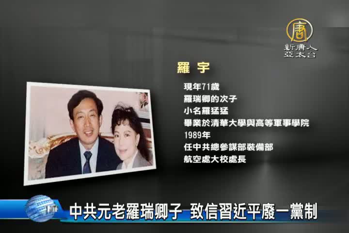 【新唐人亞太台 2015 年 12 月 04 日訊】參與中共建政的大將羅瑞卿之子 羅宇,日前投書香港媒體,以書信對話的形式,呼籲同為「太子黨」的習近平,結束中共一黨專制。現年71歲的羅宇曾任職中共總參謀部,1988年授予大校軍銜。1989年出席法國航空展,因不滿中共六四鎮壓逾期未歸,1992年被江澤民發令開除軍籍黨籍。羅宇的文章表示,習近平上臺後,首先成功粉碎了周永康、薄熙來政變的陰謀。但反貪腐,用現在的辦法,肯定成功不了。因為全黨都腐,無官不貪。要真反腐,唯一的辦法是廢除一黨專制,有序的、逐步的民主化。