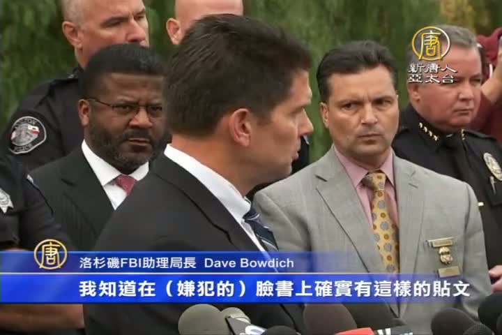 【新唐人亞太台 2015 年 12 月 05 日訊】帶您關注發生在加州聖貝納迪諾的槍擊案最新進展。週五,美國聯邦調查局確認,女性槍手確實曾經在臉書上,宣誓效忠伊斯蘭國恐怖組織,而FBI也將這起案件,認定為恐怖襲擊,並進行深入調查。